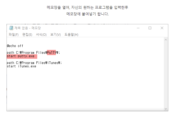 복수 프로그램 BAT 파일 만들기