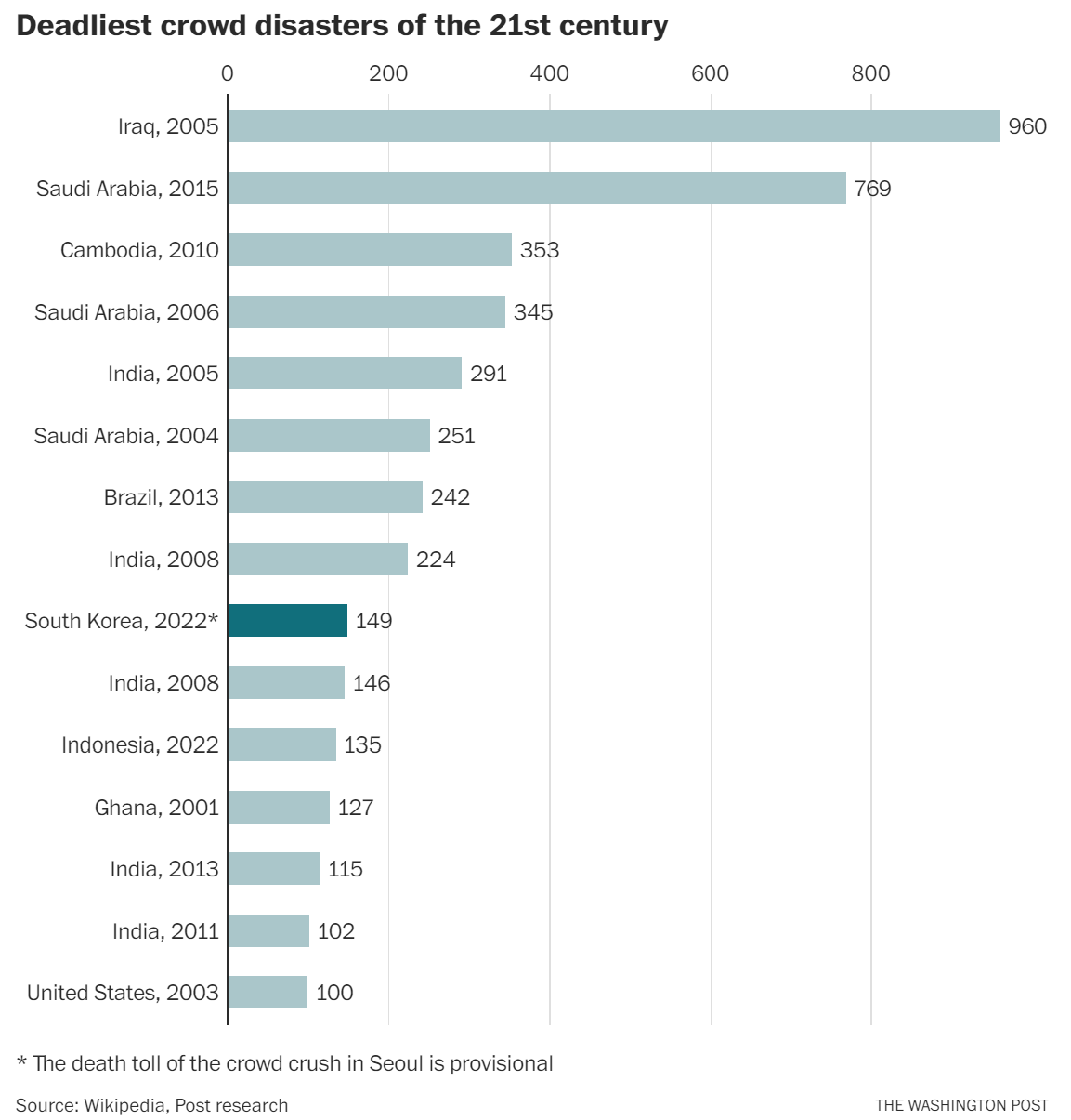 1위는 이슬람 성지에서 누군가 자폭테러범이 있다고 소리치는 바람에 순례객들이 대피하다가 대규모 압사 사고가 발생함