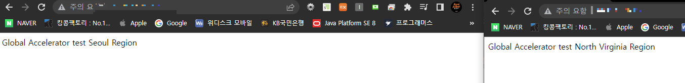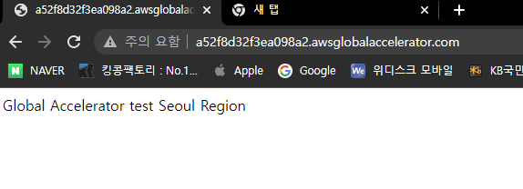 Global Accelarator를 사용하여 다른 리전에서 접속하는 것을 확인해보도록 하겠다.