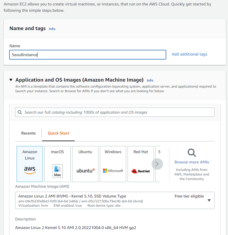 우선 EC2 Instance를 서울 리전에 먼저 생성한다.