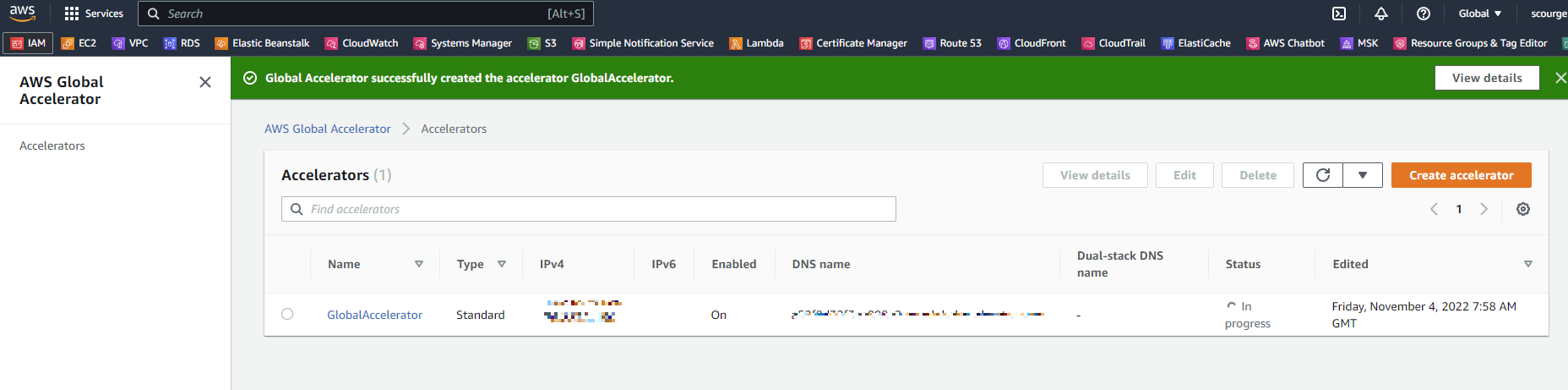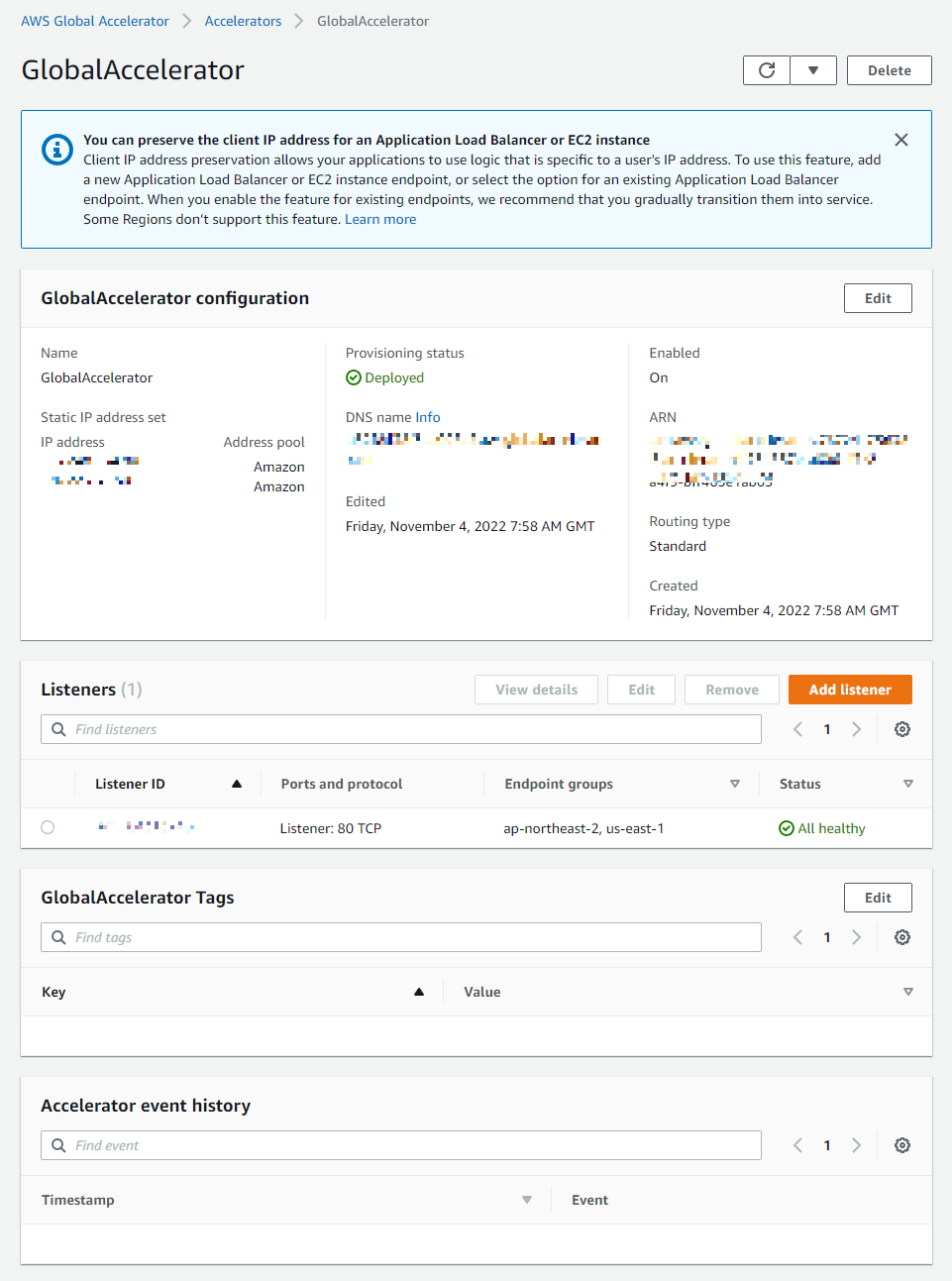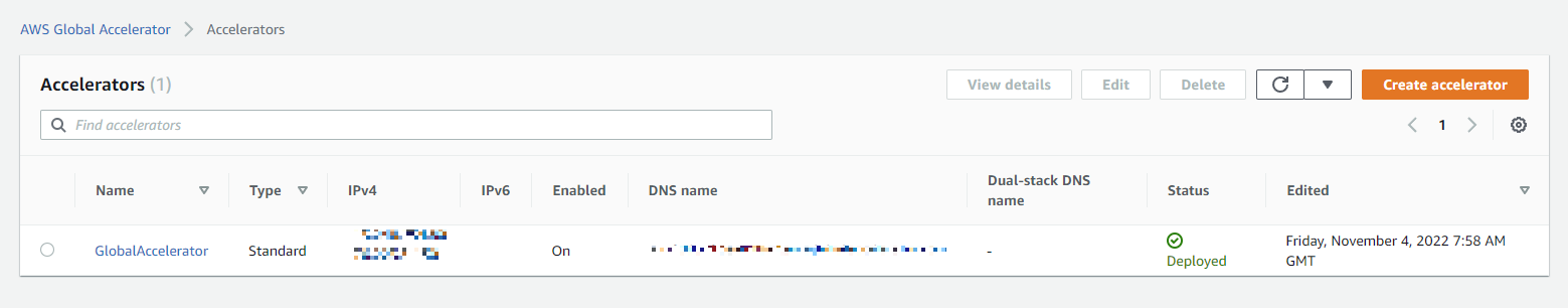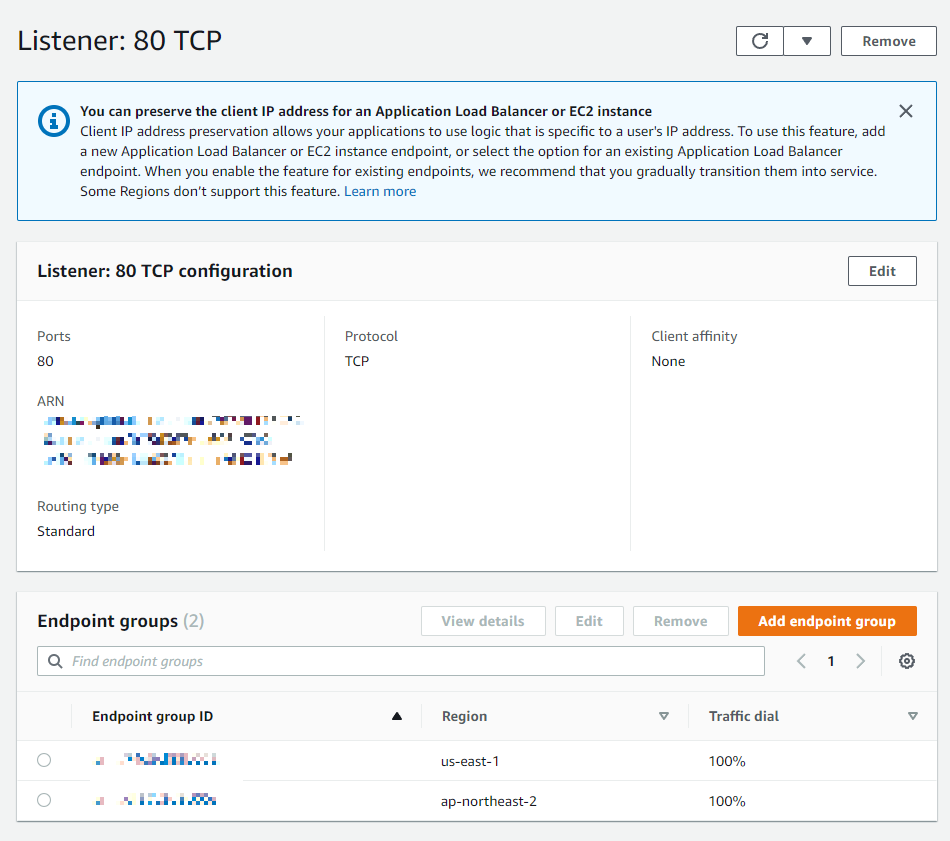 해당 Global Accelerator의 상세로 이동한다.