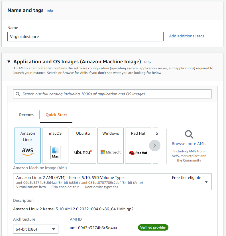 다음 Instance는 다른 Region인 버지니아 북부에 생성하도록 한다.