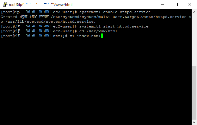 vi 편집기로 index.html을 생성한다.