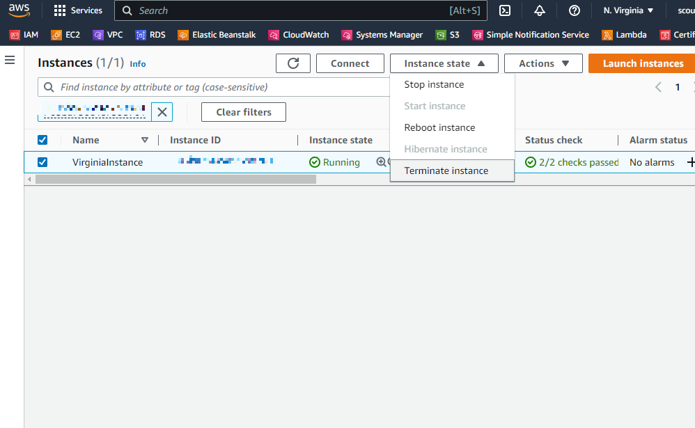 그럼 자동으로 버지니아 북부의 EC2로 변경된 것을 확인할수 있다.