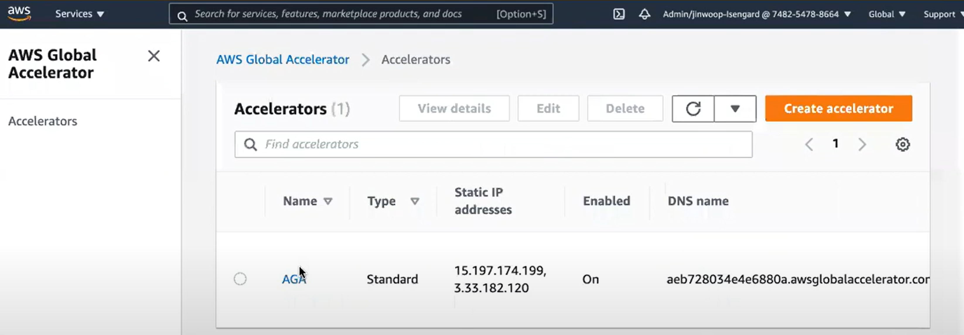 다음으로는 Global Accelerator 이름을 클릭하면