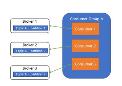 Consumer Group은 하나의 Topiuc을 구독하는 여러 Consumer 들의 모음이다. Topic을 구독하는 Consumer들을 Group화 하는 이유는 가용성 때문이다. 하나의 Topic을 처리하는 Consumer가 1개인 것보다 여러개라면 당연히 가용성은 증가할 것이다. 아래에서 설명드릴 내용이지만, Consumer Group의 각 Consumer들은 하나의 Topic의 각기 다른 Partition의 내용만을 처리할 수 있는데, 이를 통해서 Kafka는 메시지 처리 순서를 보장한다고 한다. 이 때문에, 특정 Partition을 처리하던, Consumer가 처리 불가 상태가 된다면, 해당 Partition의 메시지를 처리할 수 없는 상태가 되어 버린다. 이 때문에 Consumer Group이 필요하다.