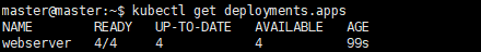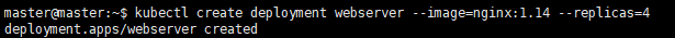 하지만 여러개의 파드를 띄우기 위해서는 create deployment 명령어를 사용해야 한다. 파드의 이름과 image를 선택한 다음 replicas 라는 옵션을 통해서 webserver 라는 이름을 가진 파드를 총 4개를 생성 해 주었다.