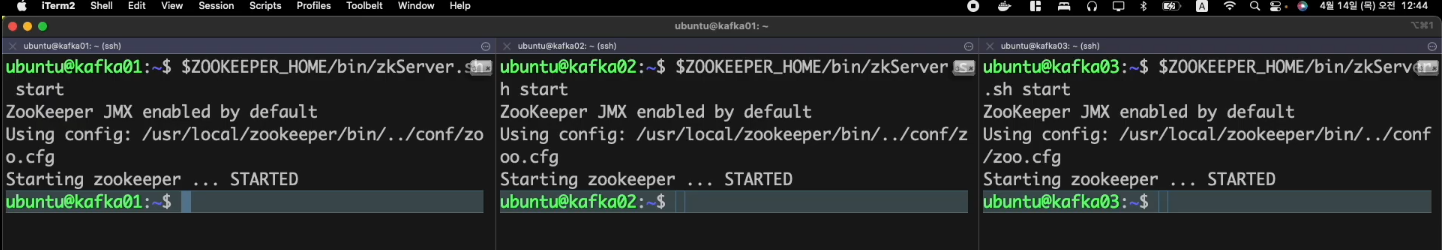 ssh kafka03 "$ZOOKEEPER_HOME/bin/zkServer.sh start"