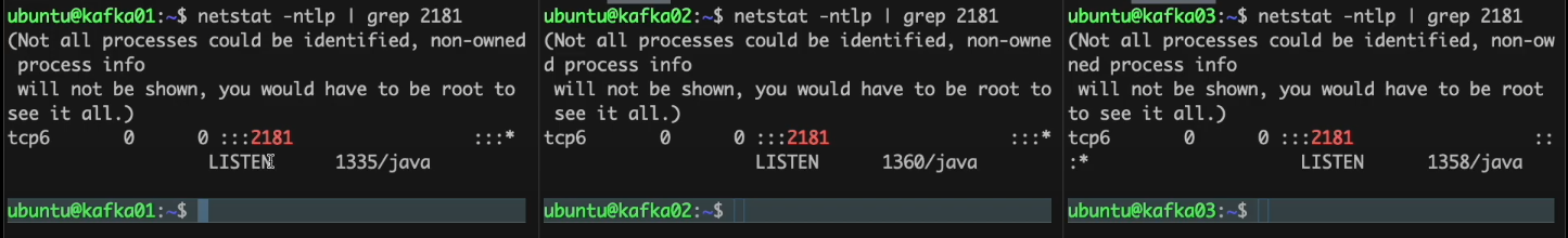 : 각 서버에서 2181 포트를 리스닝 중이라면 정상 실행 중인 것이다.