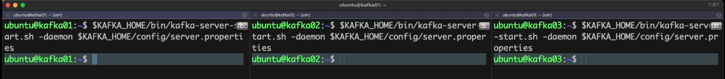 ssh kafka03 "$KAFKA_HOME/bin/kafka-server-start.sh -daemon /usr/local/kafka/config/server.properties"