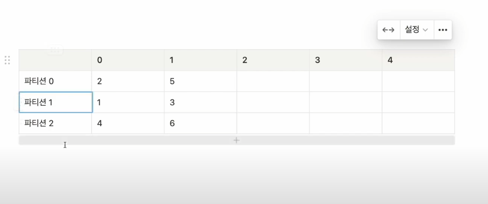 : Kafka Producer에서 들어오는 메시지는 파티션 0~2번에 랜덤으로 저장이 된다. 지금 같은 경우 가장 먼저 입력된 “a” 이벤트는 파티션 1번에 저장 되었고, 두 번째로 입력된 “b” 이벤트는 파이션 0번에 저장 되었다. 이것과 같은 원리로 Consumer에서 파티션을 읽어갈 때에도 파티션 0~2번 중에 순서를 알 수 없이 접근하여 데이터를 읽어가기 때문에 최초 데이터 삽입 순서를 보장 받을 수 없다.
