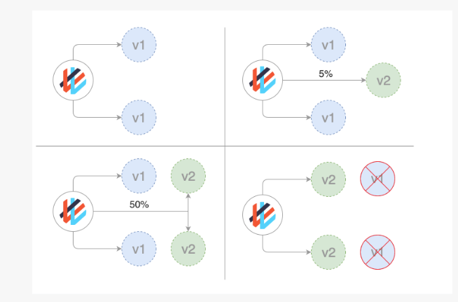 여기서 replicas를 조정하여 아예 v0.2의 서비스를 막을수도 있고 replicas를 증가시켜 v0.2의 빈도를 더욱 높일수도 있다.