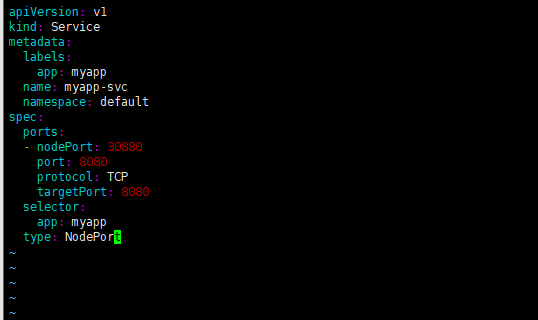 그 후 pod를 외부로 노출시킬 myapp-svc.yaml을 생성한다.