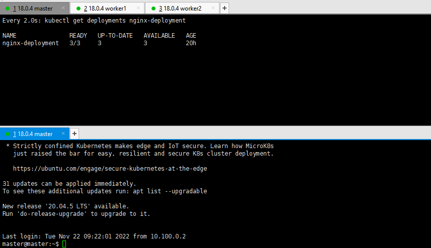 이는 nginx 버전을 1.14.2 에서 1.21.6으로 변경했기 때문에 1.14.2의 rs는 현재 0개고 1.21.6의 rs는 현재 4개인 것을 볼 수 있다.