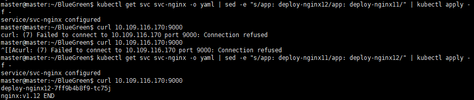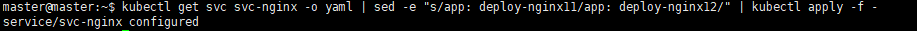 kubectl get svc svc-nginx -o yaml | sed -e "s/app: deploy-nginx11/app: deploy-nginx12/" | kubectl apply -f -
