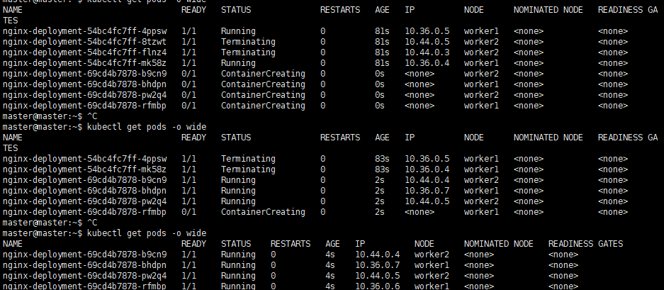 그리고 업데이트가 진행되는 동안 실시간으로 확인해 본 Pod List를 확인해 본 결과