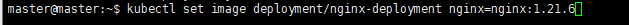 kubectl set image deployment/nginx-deployment nginx=nginx:1.21.6