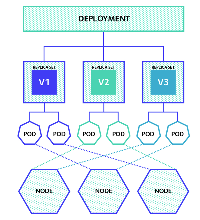 즉 Deployment가 Replicasets을 생성하고 Replicasets이 Pod를 만든다.