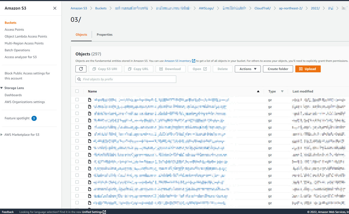 운영을 하다 보면 아래처럼 각 Region, 날짜별로 거의 5분 단위로 로그가 쌓인다. 위 실습으로 방금 막 CloudTrail을 생성한 사용자라면 조금만 기다리면 로그 파일이 지정한 S3 버킷 경로에 생성되는 것을 볼 수 있을 것이다. 무튼 이 많은 로그에 특정 데이터를 찾아야 한다면 조금 막막할 수 있다. 하지만 Athena를 사용하면 저 많은 파일의 데이터를 하나의 DB에 모아, 사용자는 DB 데이터 기반으로 로그를 검색할 수가 있다.