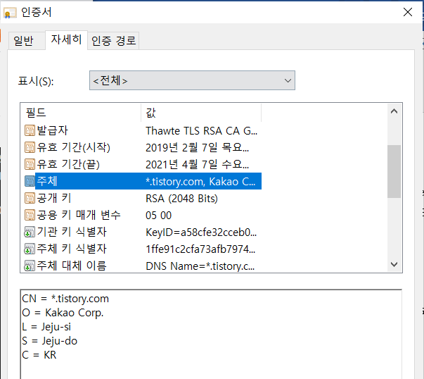 Common Name(CN) : 발급대상의 도메인명