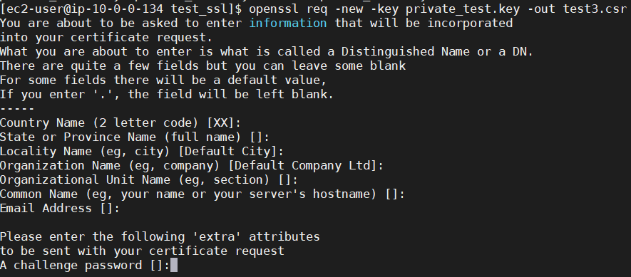 openssl req -new -key private_test.key -out test.csr