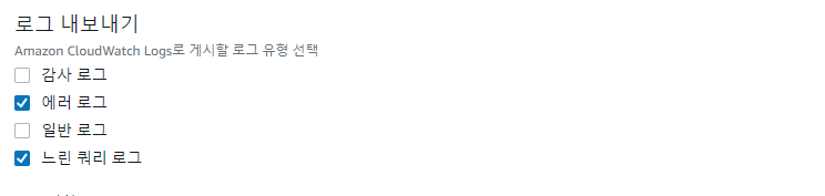 [확인하고자 하는 클러스터 > 수정 > 추가구성(옵션) > 로그 내보내기(옵션) ]