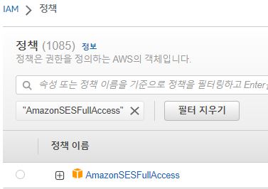 마지막으로 AmazonSESFullAccess 권한을 가진 IAM 사용자를 생성하도록 합니다. IAM 사용자의 accessKey와 secretKey로 Spring Boot 애플리케이션에서 AWS Credentials 인증이 필요하기 때문입니다.