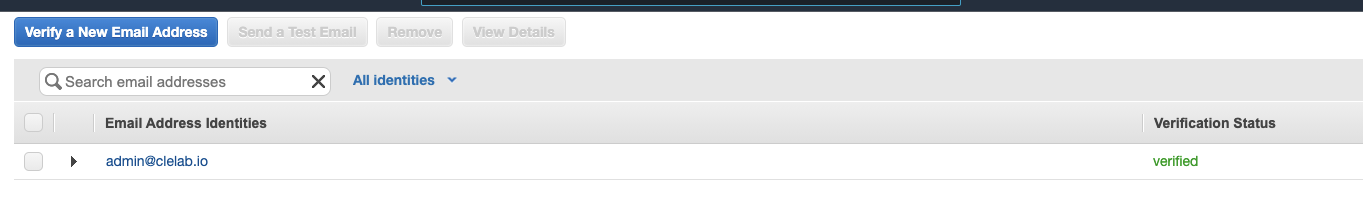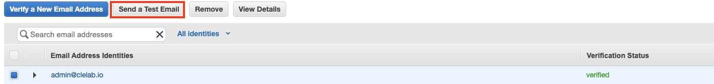 아래와 같이 verified 상태로 변경된 것을 확인할 수 있습니다. 테스트 이메일을 보내볼까요?
