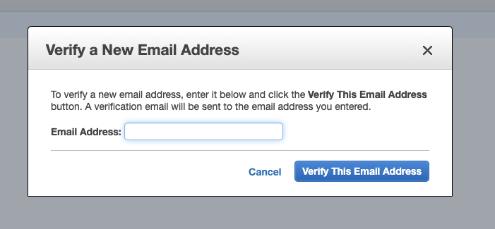 이메일 주소 목록에 간 뒤에, Verify a New Email Address를 클릭해서 이메일 주소를 등록할 수 있습니다.