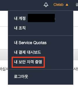 내 프로필을 누르고 보안 자격 증명을 들어갑니다.