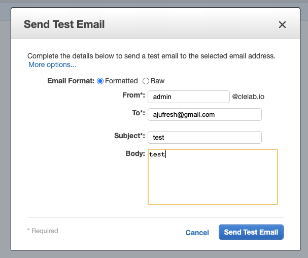 To, Subject, Body에 순서대로 내용을 적어주고, Send Test Email을 클릭하면