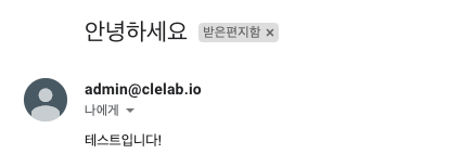 아까와 같은 방법으로 테스트 메일을 보내보도록 하겠습니다.