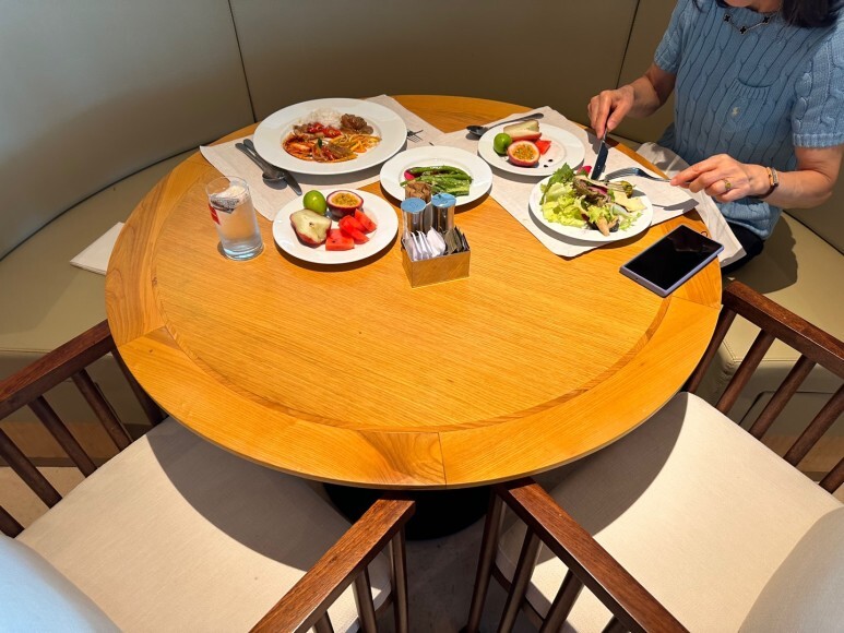 오픈 된 테이블 자리보다 이 원형테이블이 조용하게 식사하기 좋아요