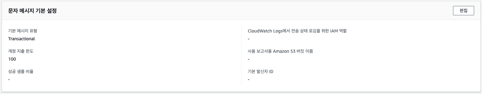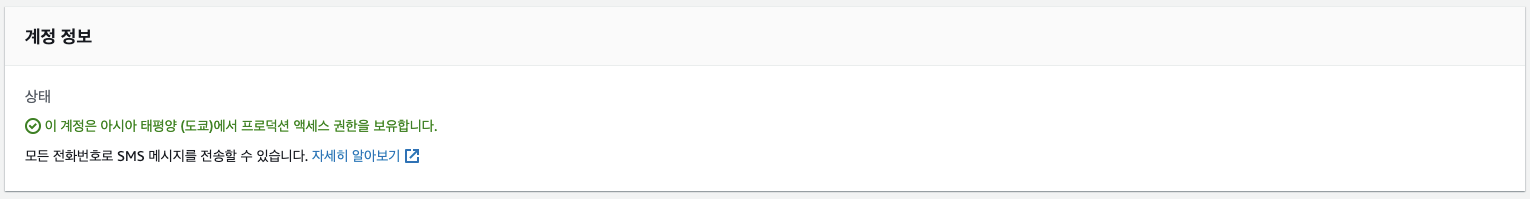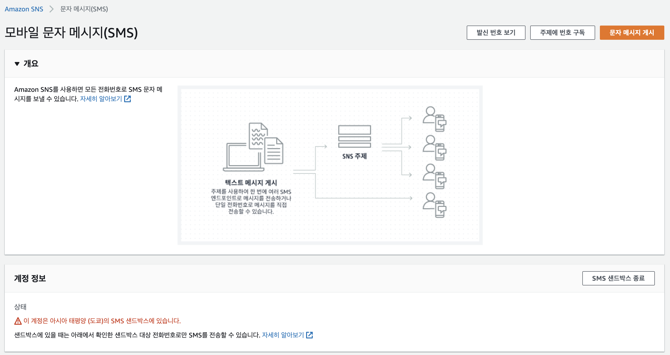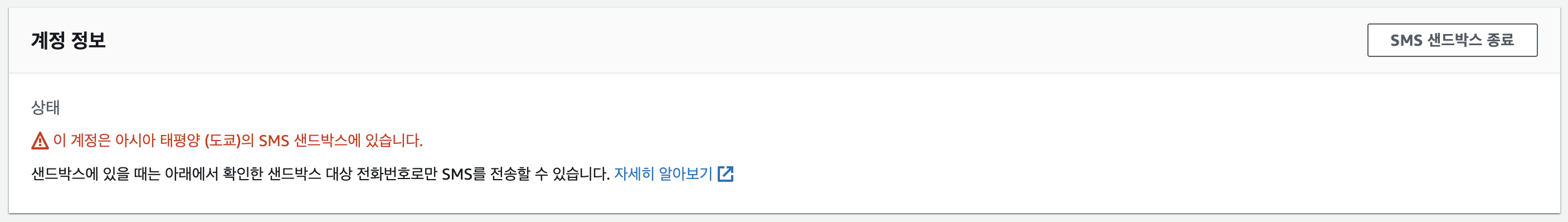 SMS 서비스는 AWS SendBox에 보호를 받고 있습니다.