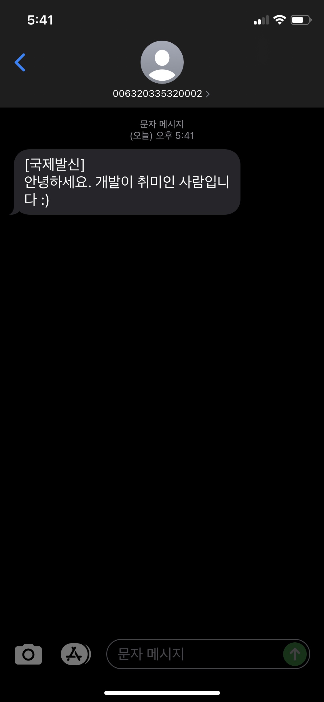 해당 파일을 실행 하면 아래와 같이 문자 메시지가 오면 성공입니다.