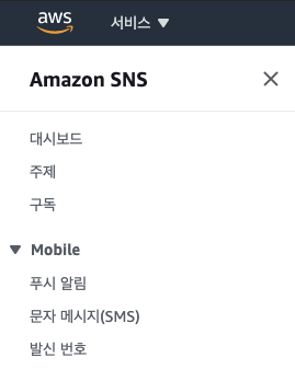 도쿄 리전으로 변경하고 다시 확인하면 아래와 같이 문자 메시지(SMS) 카테고리를 확인할 수 있습니다.