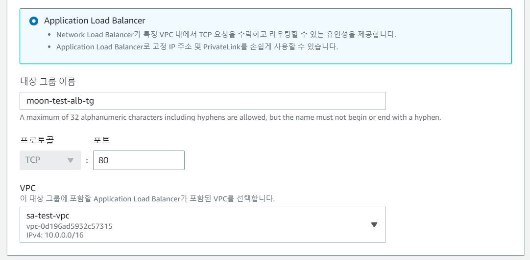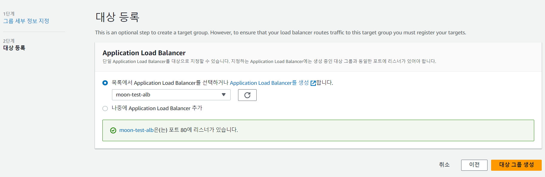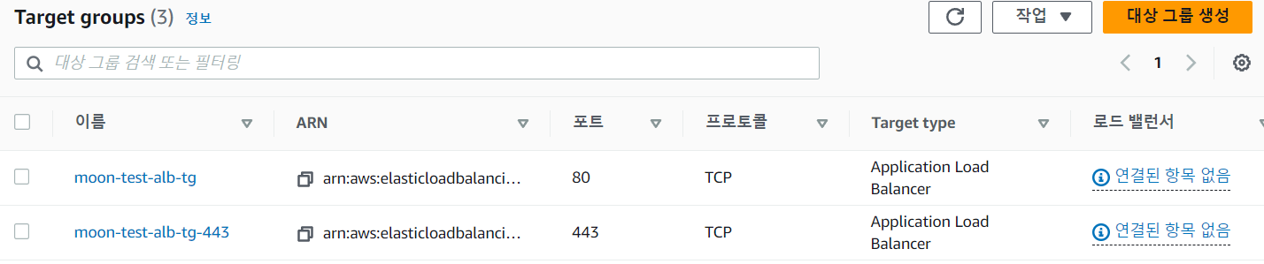 - 2 에서 생성한 ALB를 타겟으로 하는 타겟 그룹을 만든다. 80포트와 443포트로 각각 만든다.