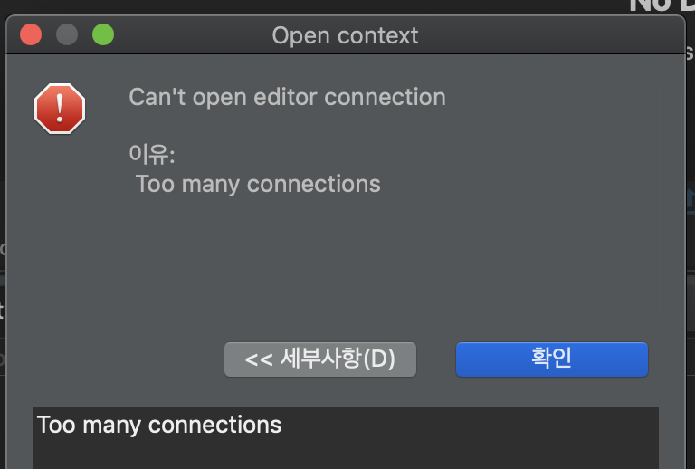 DBeaver로 RDS 접속 시 아래와 같은 에러 메시지가 발생하며 SQL 쿼리 실행이 불가능한 상황이 발생했다.