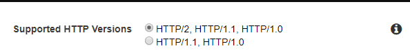 AWS는 2016년 9월부터 Cloud Front에서 HTTP/2를 지원해주기 시작했다. 간단한 세팅 만으로 HTTP/1.1에서 HTTP/2로 변경할 수 있다. 또한 HTTP/2를 지원하지않는 하위 버전의 브라우저에서 요청을 받는다면 HTTP/1.1으로 프로토콜을 변경하여 응답하는 기능 또한 가지고 있다.