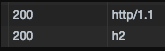그러면 네트워크 탭에서 HTTP/2 프로토콜로 통신하여 받아온 리소스는 h2라고 표시가 된다.