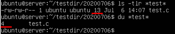 자 위의 그림을 보면 test.c의 크기는 13으로 되어있는데 du 결과는 4예요. 왜 다르냐고요?!