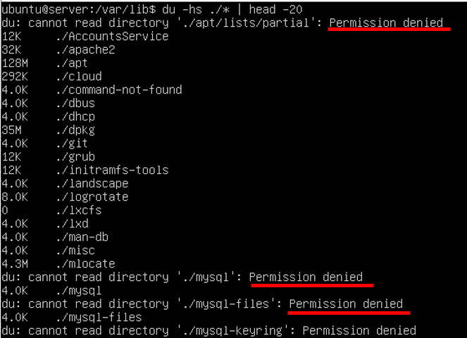 du를 실행하면 root권한이 아닌 이상 접근이 허용되지 않은 디렉터리가 있을 수 있어요.