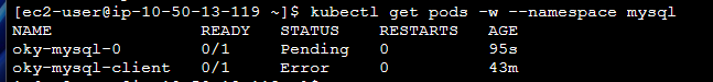$ kubectl -n mysql exec -it oky-mysql -- mysql -u root -p