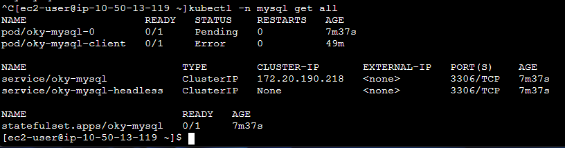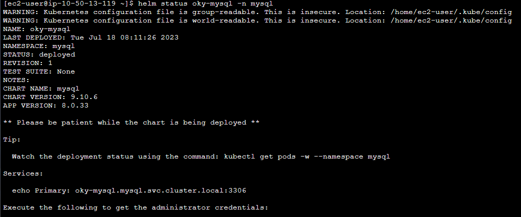 $ helm install oky-mysql bitnami/mysql -n mysql