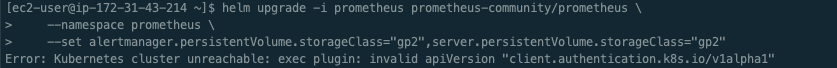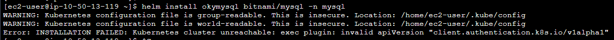 Error: INSTALLATION FAILED: Kubernetes cluster unreachable: exec plugin: invalid apiVersion "client.authentication.k8s.io/v1alpha1"