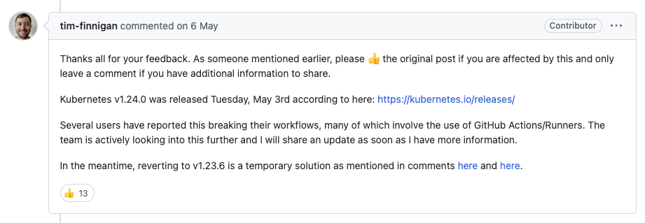 ㅇ 1.23.6 버젼으로 다운그레이드를 권고하고 있다.