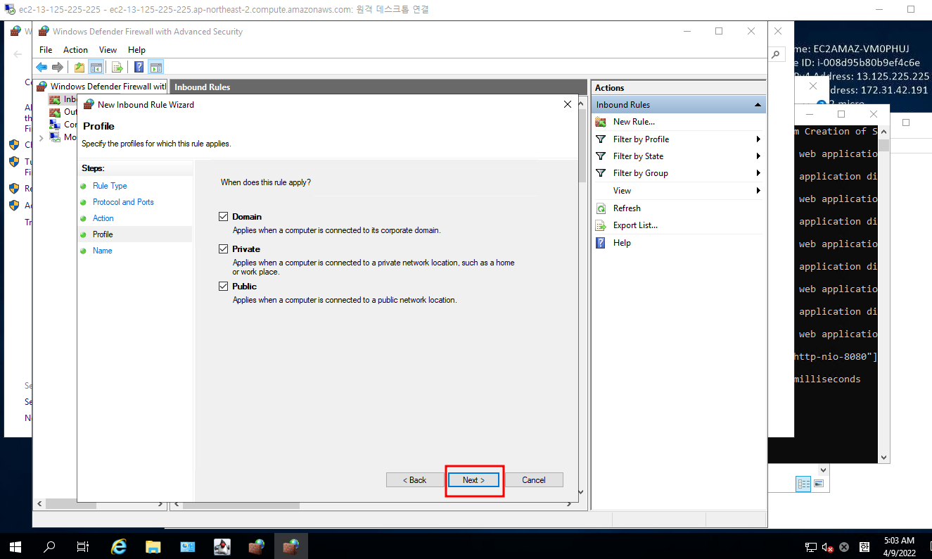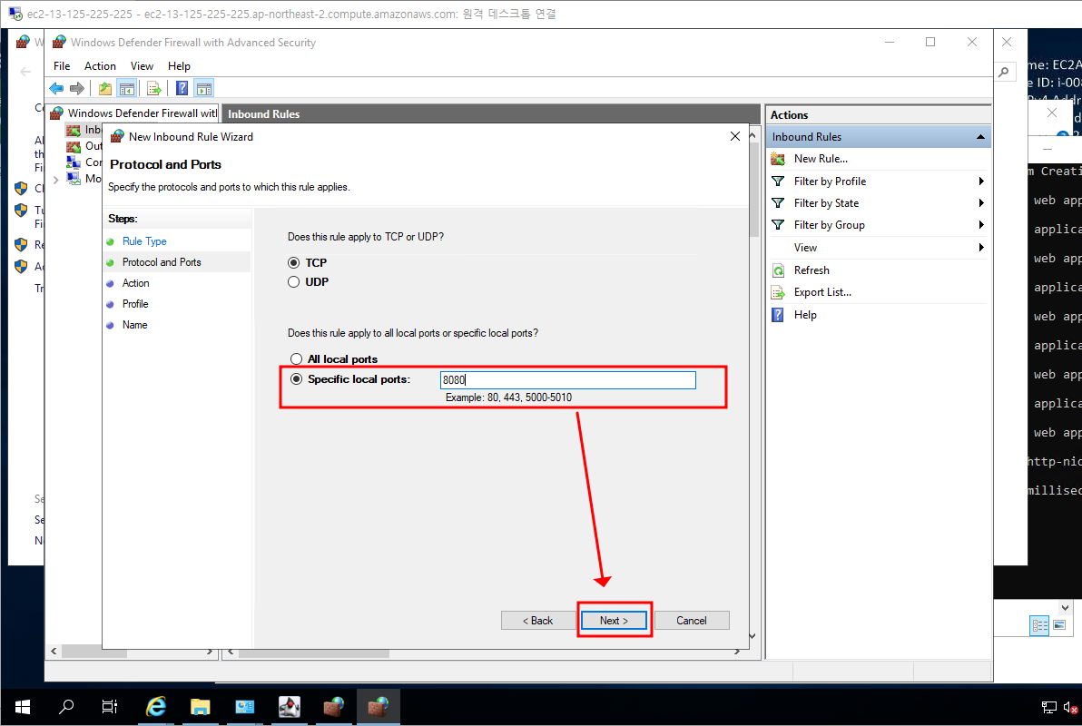 여기까지 했으면 보안 그룹의 인바운드 보안 그룹 규칙 수정 완료