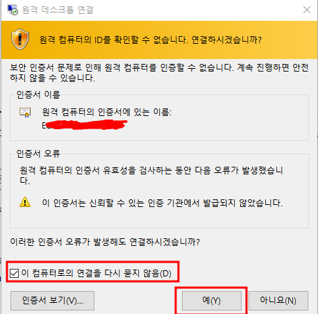 원격 데스크톱 파일 다운로드된 것을 더블클릭하면 하단의 화면이 나올 것이다.