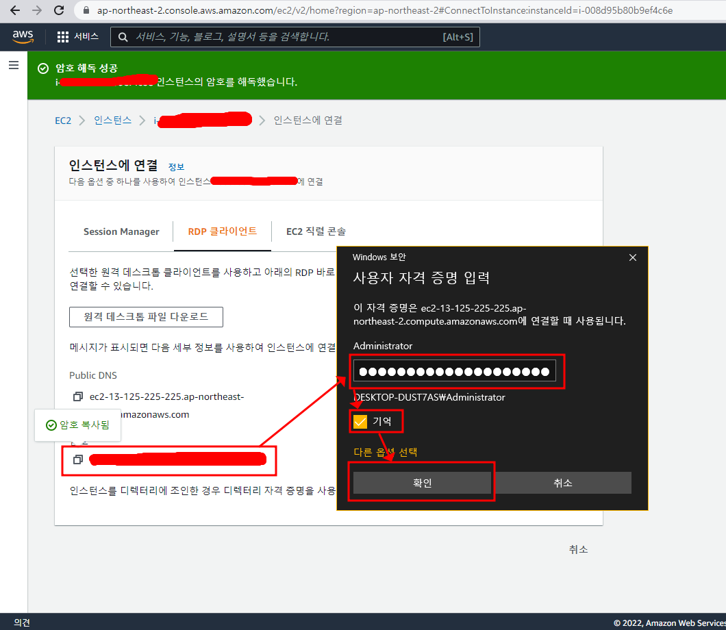 여기서 퍼블릭 IPv4 주소를 복사한다.