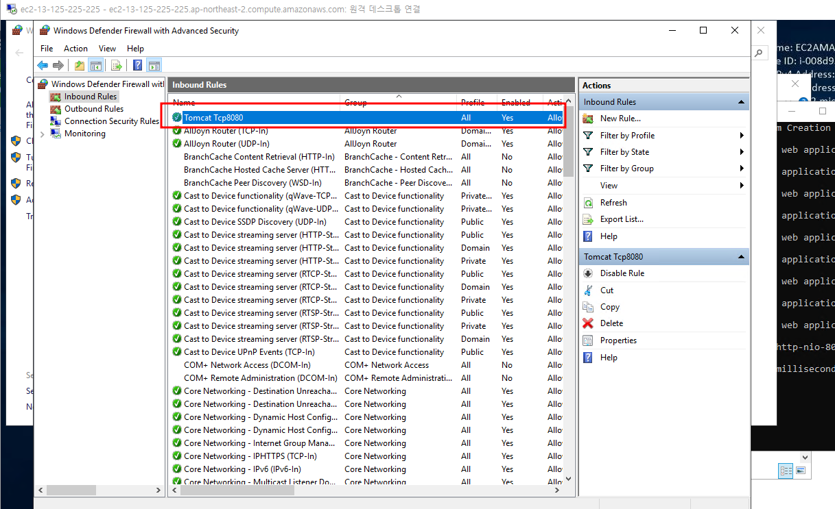 톰캣 8080 포트를 열어준다.